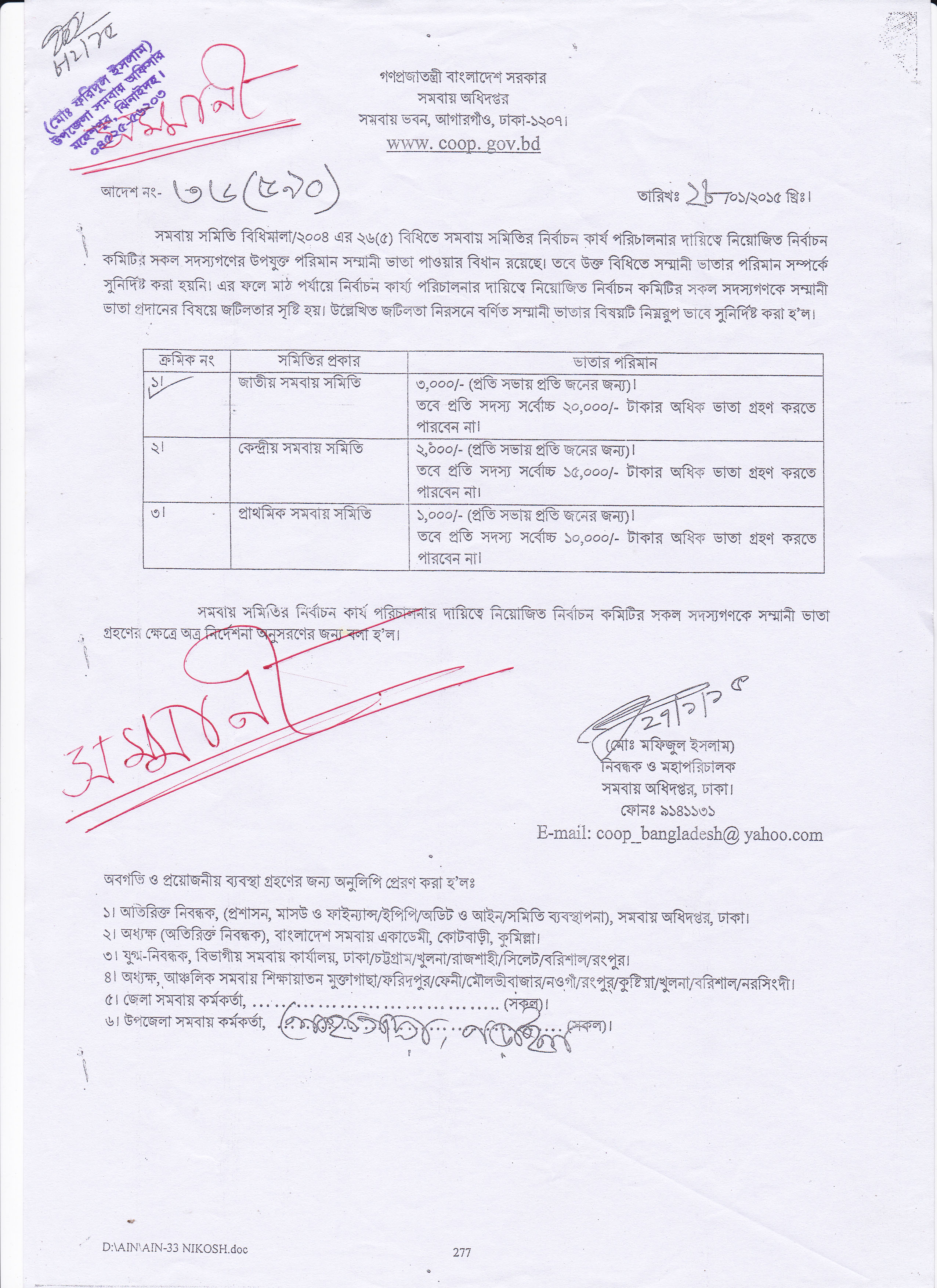 | ০২ | নির্বাচন কমিটির সদস্যদের সম্মানী | ৩৬(৫৯০), | ২৮/০১/২০১৫ | ডিজি | ০২ |