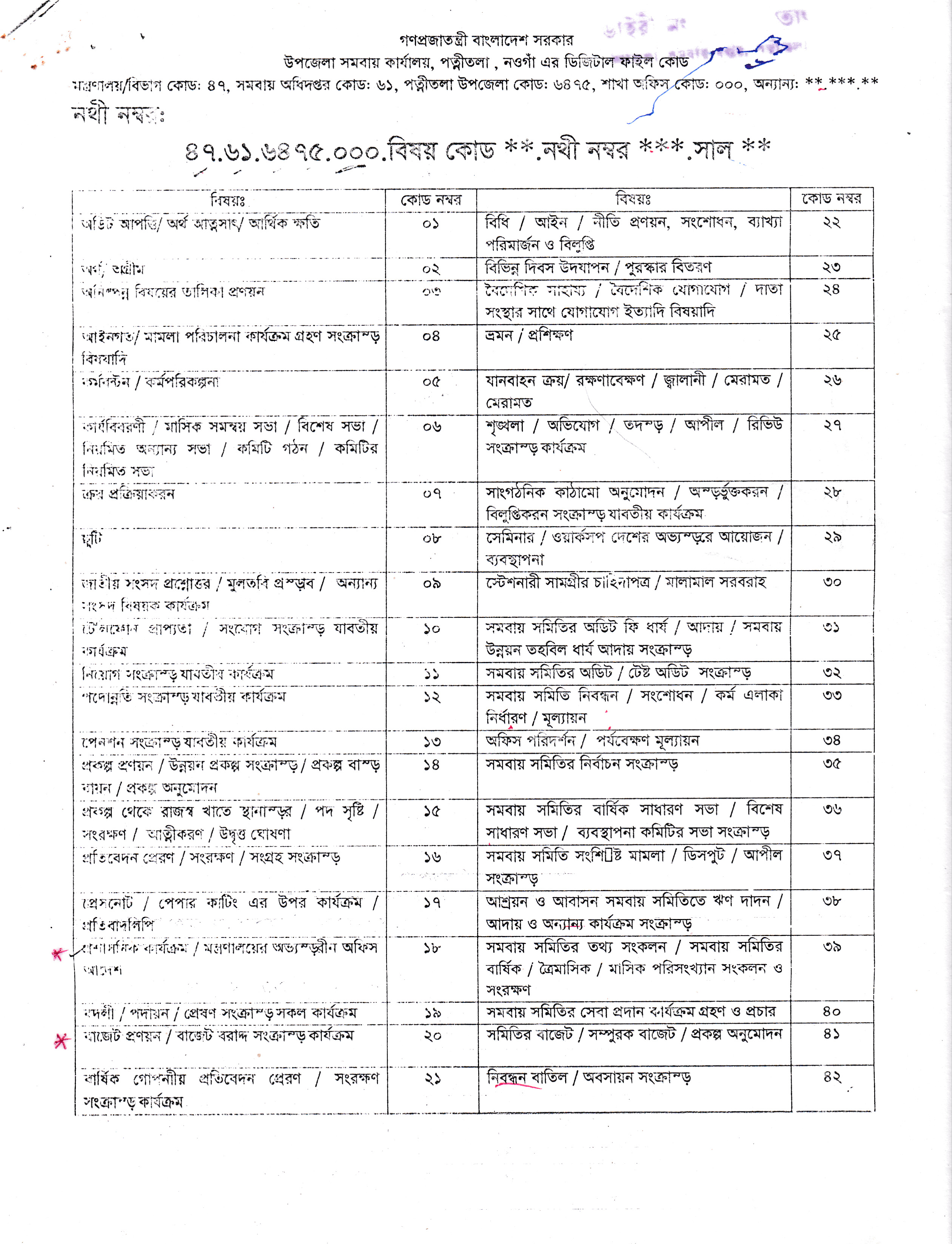 | ০৬ | নথির কোড নম্বর | -- | -- | -- | ০৬ |